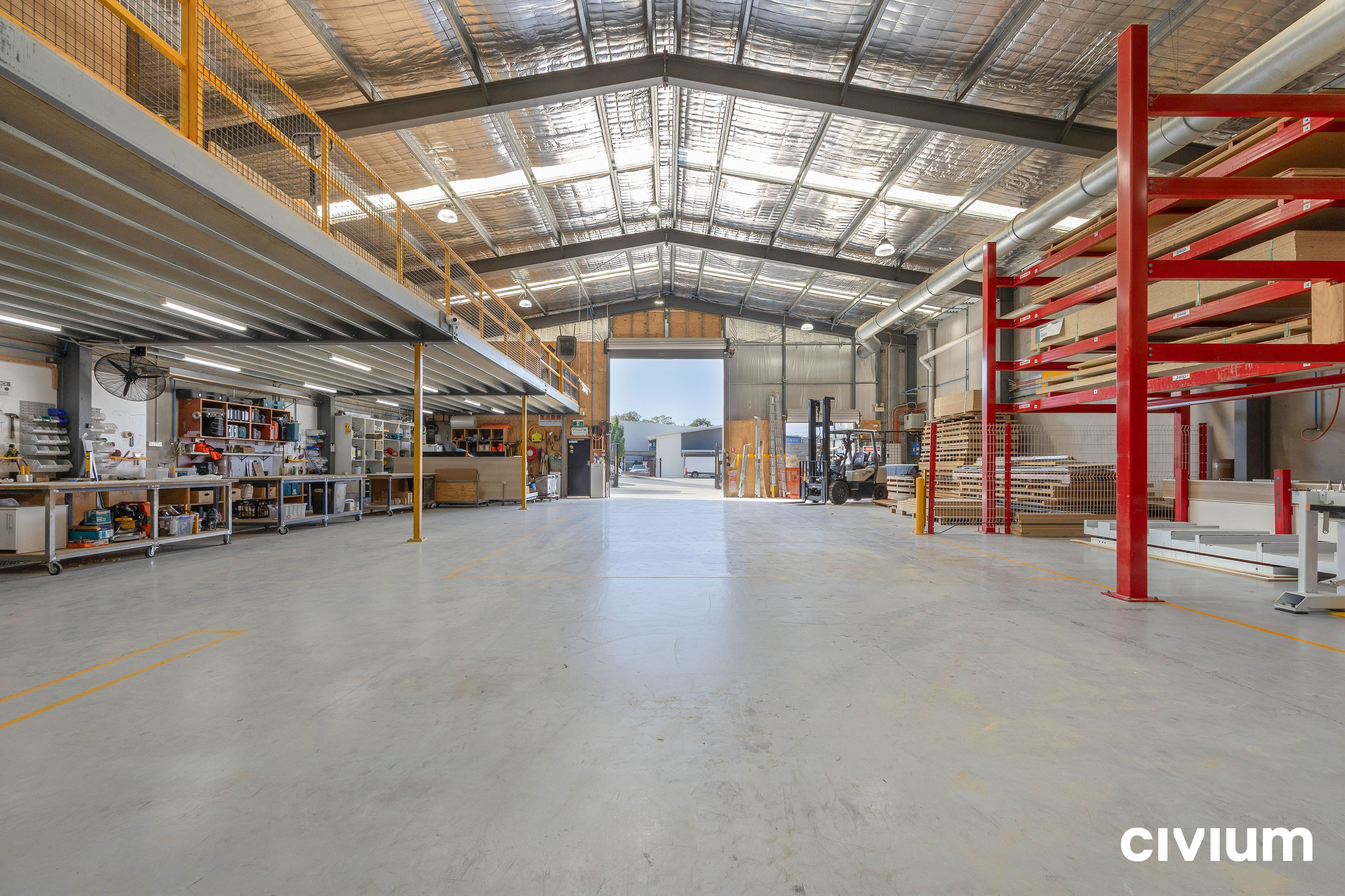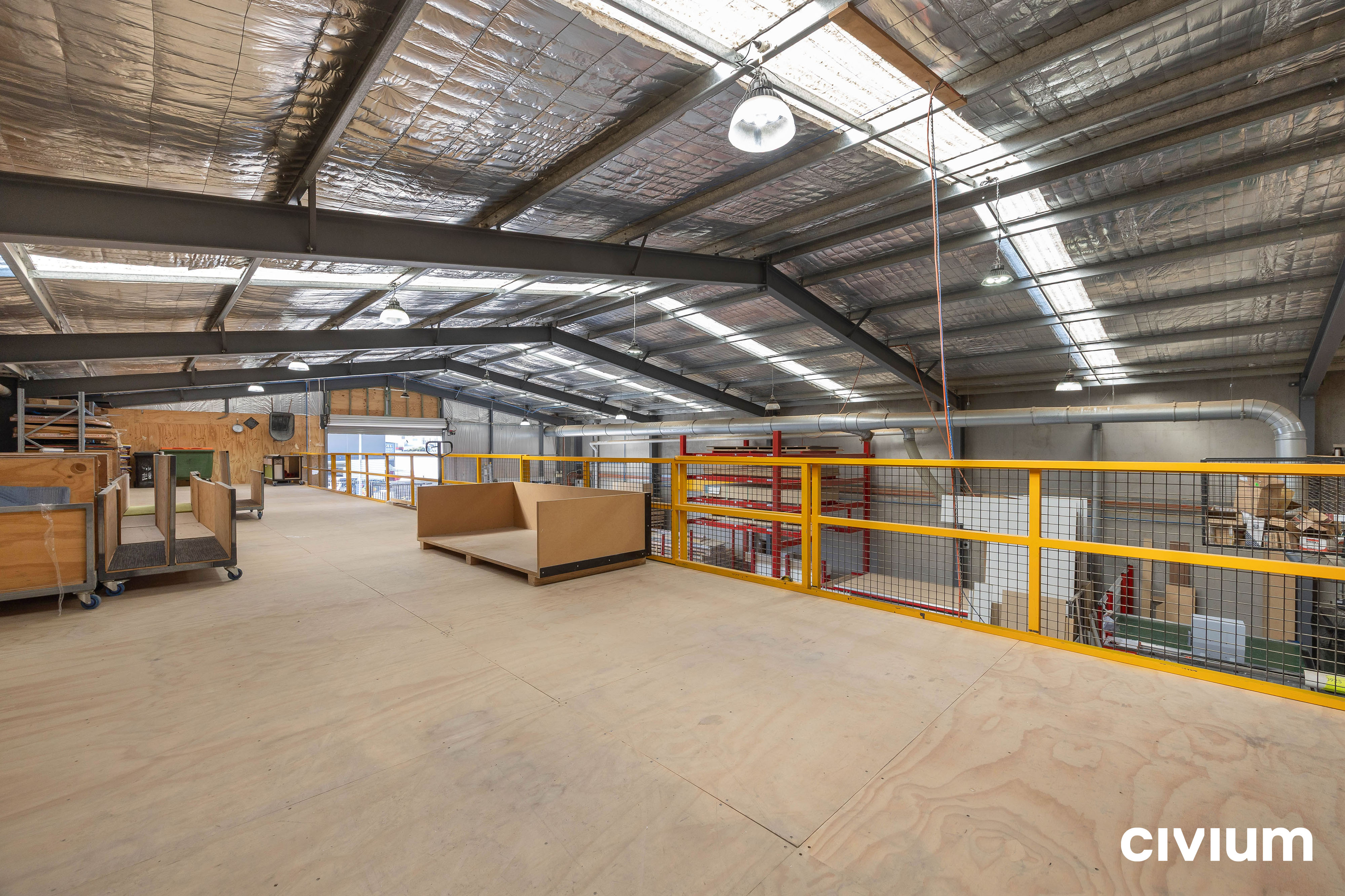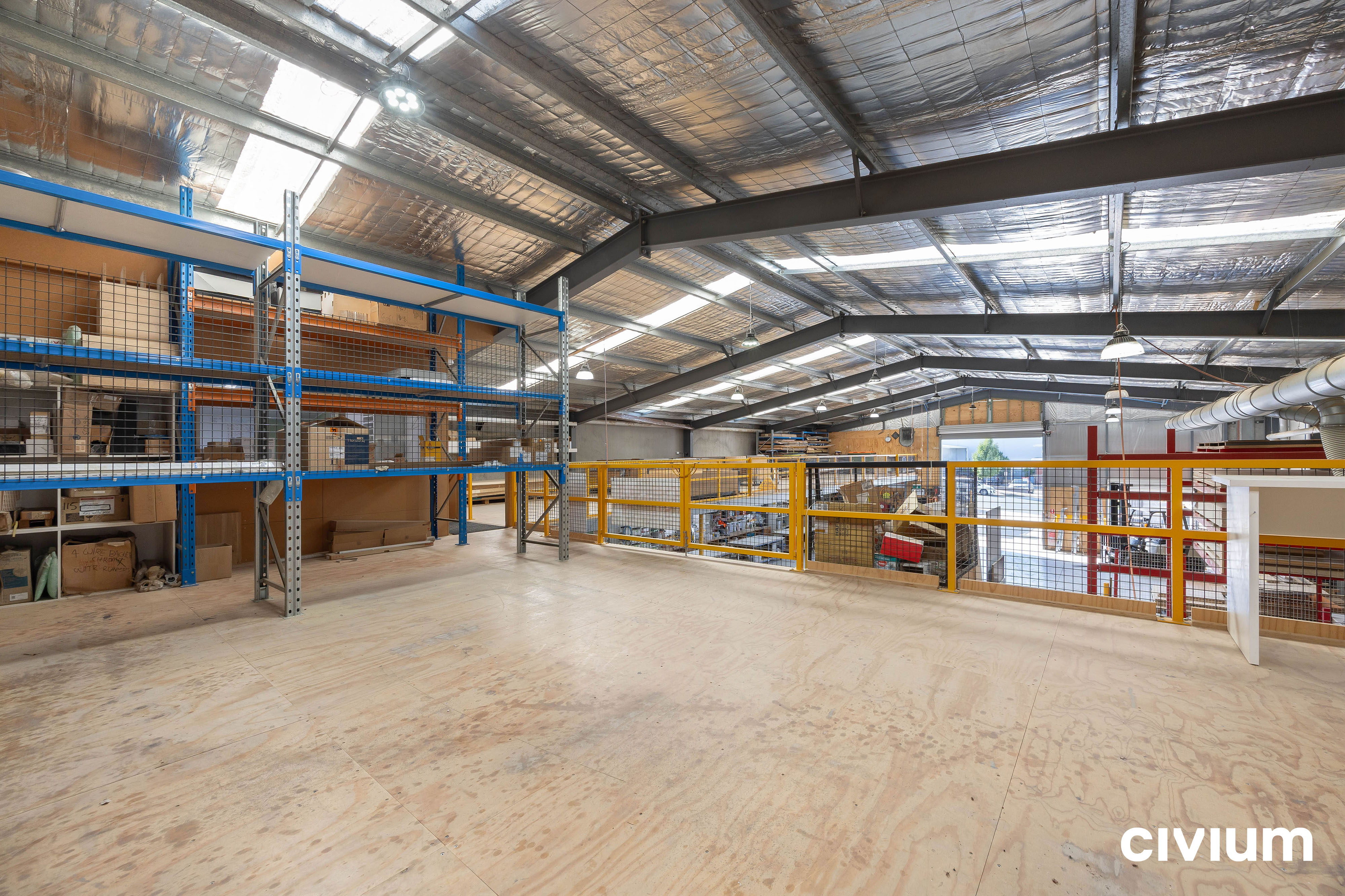 • Mezzanine storage with handrails and forklift access gates