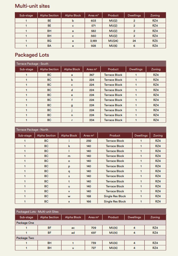 * Sect BF Blocks ac & ad-r, land area 709m2 and 697m2, 4 dwellings each block