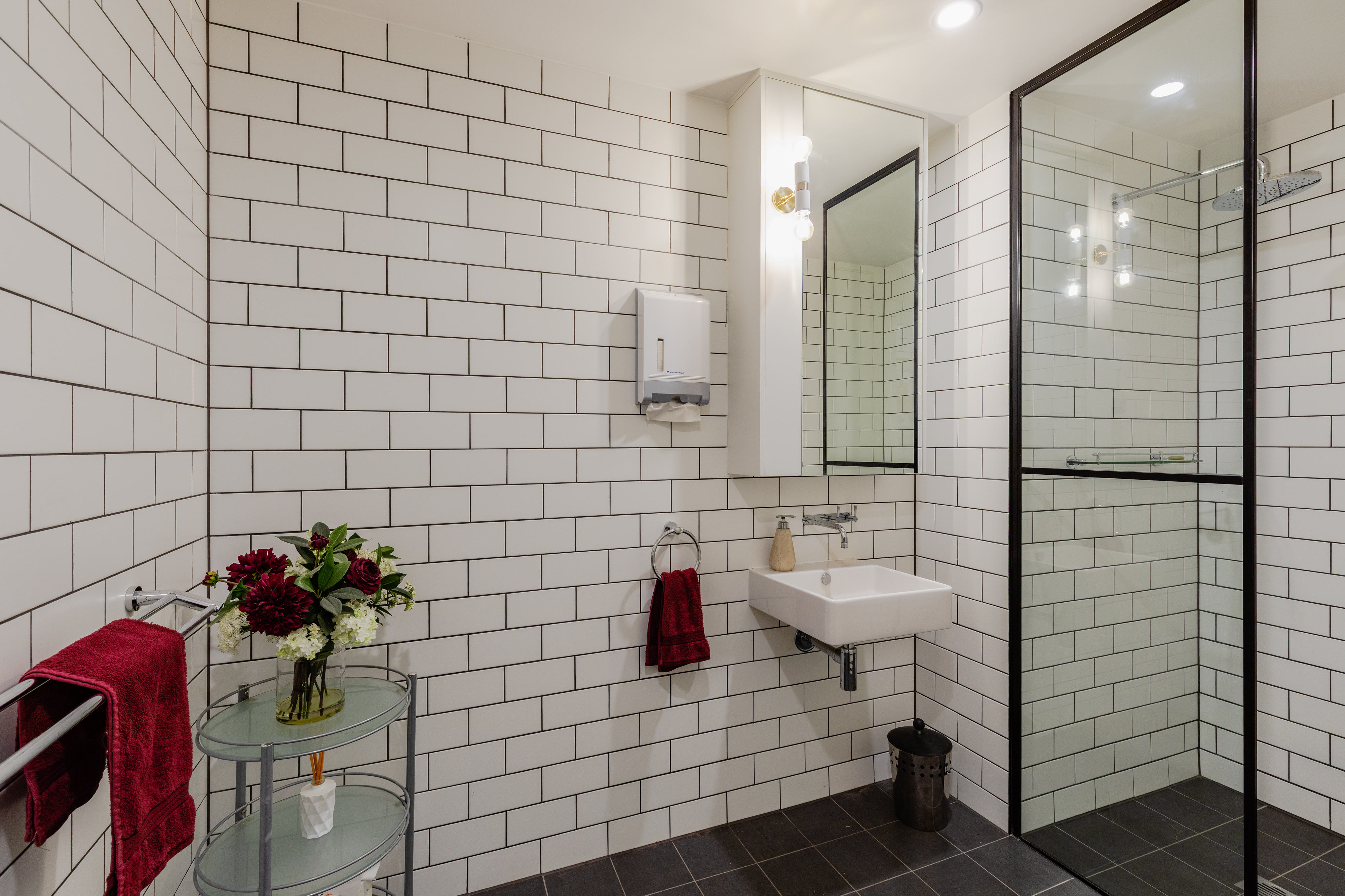 • Bathroom amenities including shower
