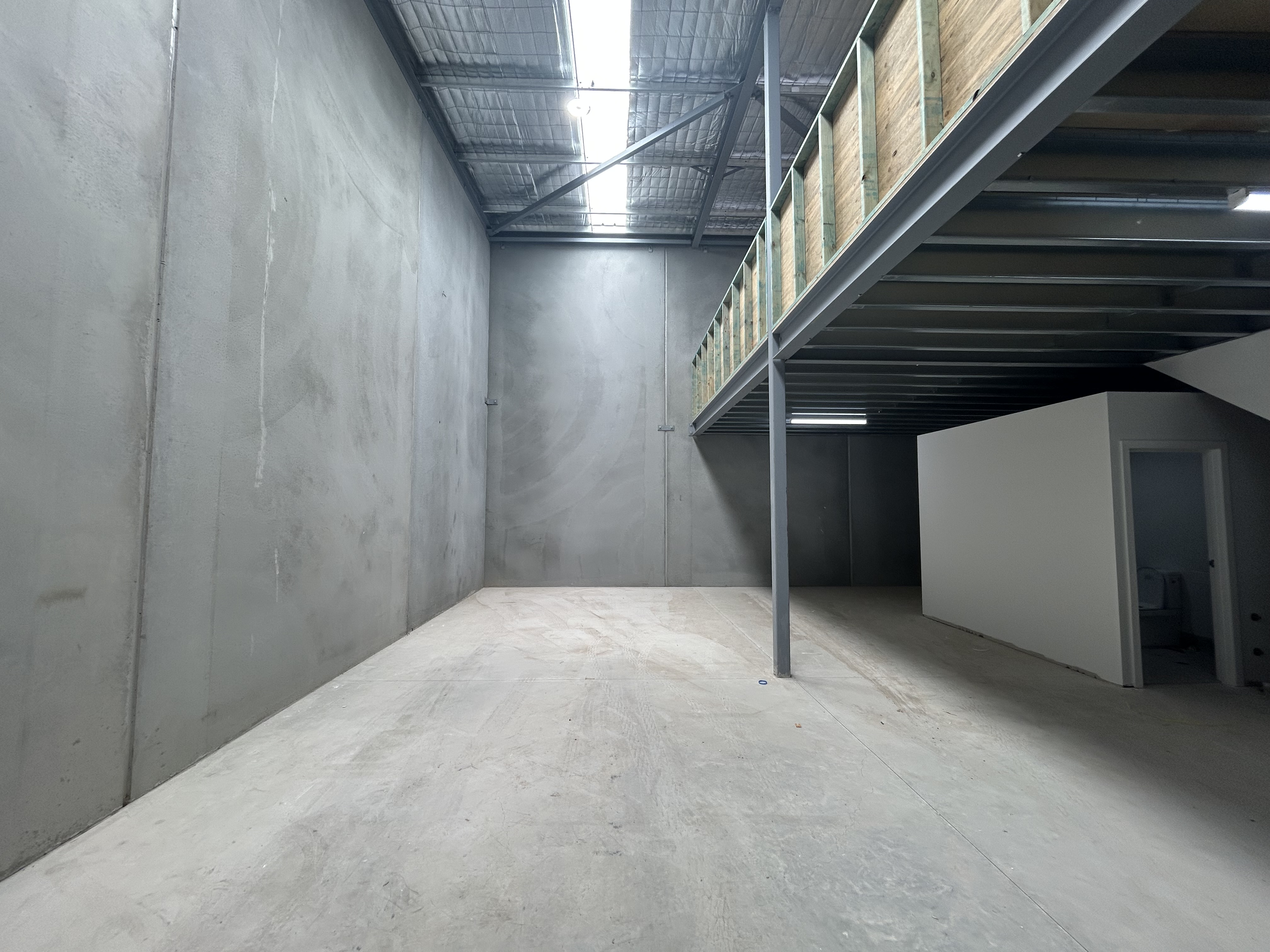 Unit 13 presents a rare opportunity as the final front-positioned unit within the complex, offering premium exposure and accessibility. Designed with both functionality and flexibility in mind, the unit features a high-clearance, clear-span warehouse with an electric roller door, complemented by a light-filled, open-plan mezzanine with glazed frontage, ideal for office, storage, or showroom use.