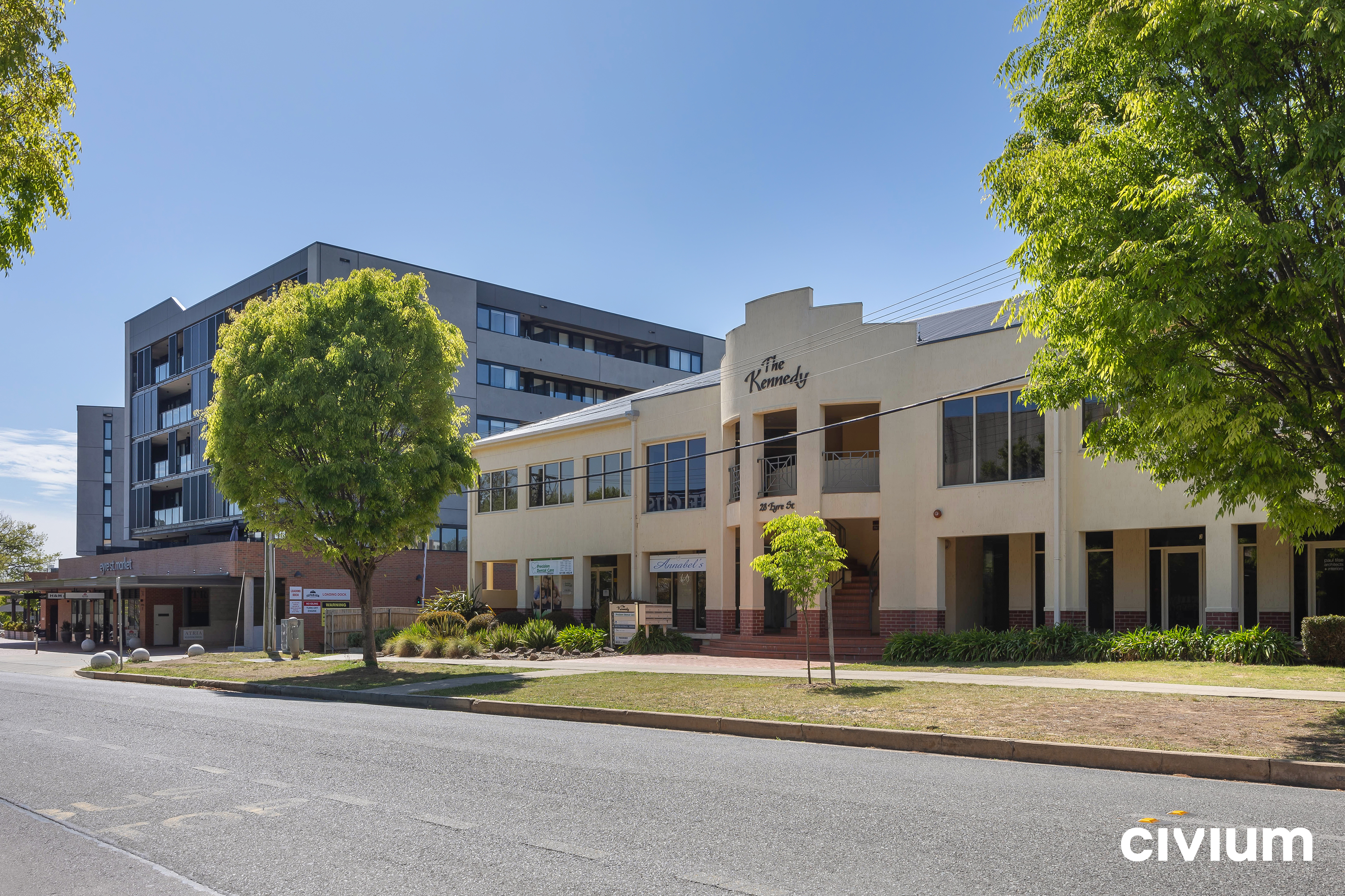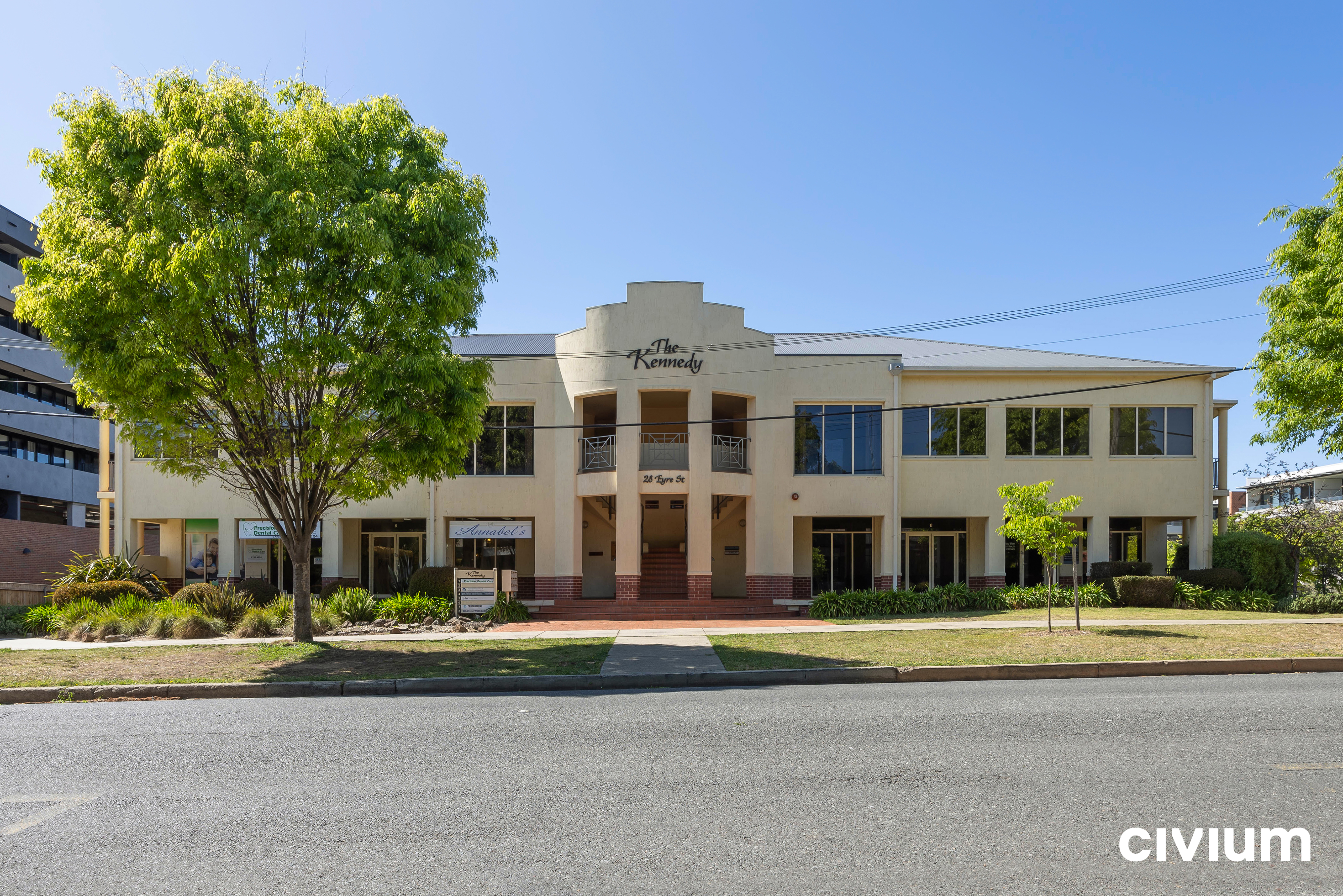 The Kennedy is located on the Southern edge of the Kingston shopping centre. It has a large public car park next to it and looks directly at the Cusak Furniture shop. The Kennedy is a strata-titled commercial development in the popular suburb of Kingston. The building covers two levels and has rear and basement parking and on grade parking. The building suits professional services firms and boutique offices. Each of the units has a fantastic outlook towards the Kingston town centre and Green square, where a huge array of coffee shops, retail outlets, and restaurants await your custom.
