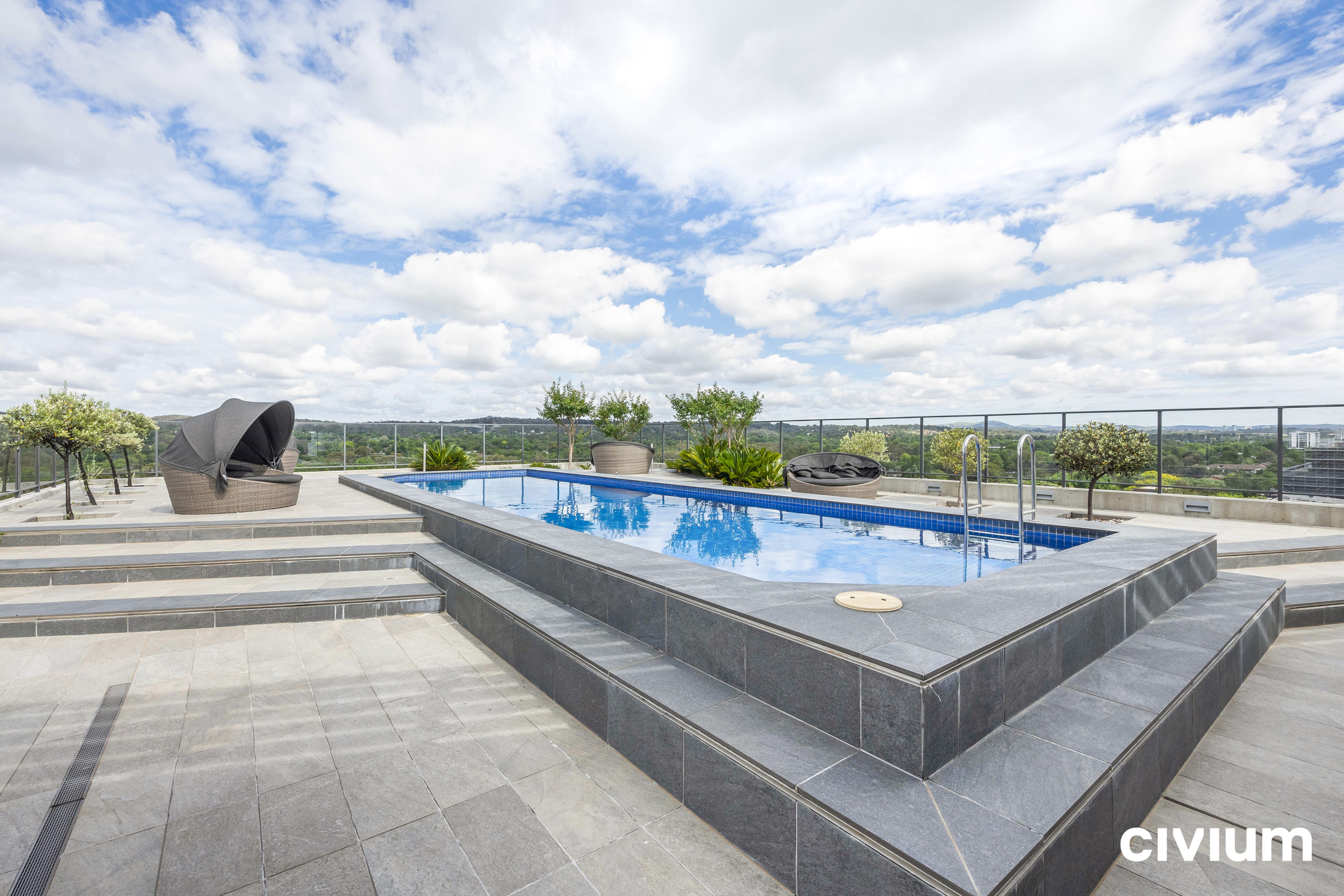 • Access to the top floor roof providing a common area swimming pool, with magnificent views to black mountain and south to the city
